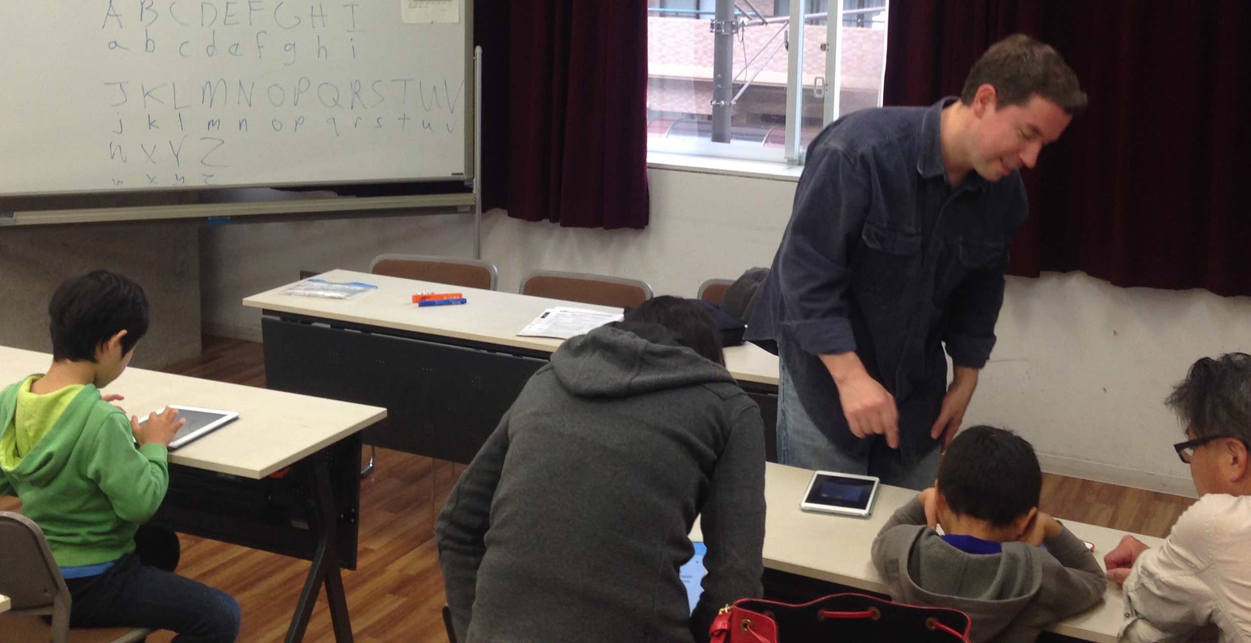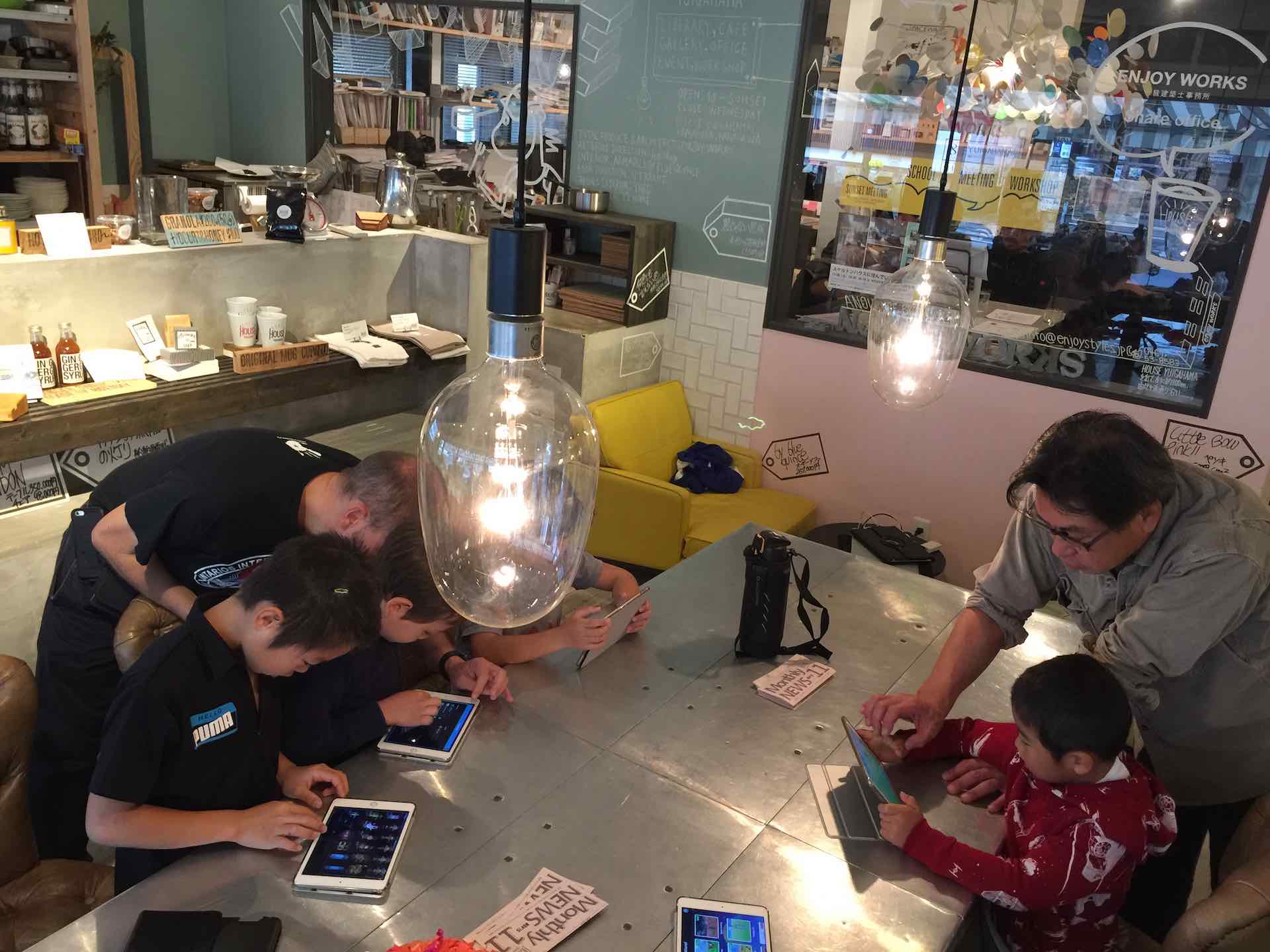 iPad上タイピングの練習ゲーム・声で遊ぶ英語ゲーム・Codea IDE/ルア言語で簡単なプログラムを入力し実行すると言うクラースです。
